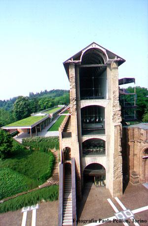 Ascanio Vittozzi worked on the project but it was Carlo di Castellamonte who did the actual construction. The Rivoli Castle is described in the Theatrum Sabaudiae which contains two images showing a long building beside the residence crowned by its four angular towers. This long building was the Duke's Picture Gallery and today is known as the Manica Lunga.The Restoration: "Ouverture" was the contemporary art exhibition that inaugurated the restored castle. The natural lighting and the dialogue between the architecture and the works of art it contain render this museum unique and different from other contemporary art museums. Its messages are more real and interesting. The restoration work on the Manica Lunga commenced. The 17th century construction was still heavily damaged by the previous installation of lofts and make-shift additions which had drastically altered the internal spaces. The space in the long gallery commissioned by Carlo Emanuele I for his painting collection has been returned to its original condition. To maintain the integrity of the interior the stairways, lifts and washrooms have been placed outside the north wall of the main structure so as to not take away from the architecture of the original building. These have been constructed using up to date material and building techniques. The new roof is held aloft by a series of metal girders; light penetrates the upper part of the gallery through two long window slits running the length of the ceiling; one end of the gallery has been completed with a large floor-to-ceiling glass window which frames the rustic castle wall it faces. On the other end, a mirrored wall reflects the gallery interior making it appear double the length it actually is. This mirrored wall also holds a tall window which opens onto the landscape outside.The main entrance to the Manica Lunga begins at the level of Juvarra's atrium, in the space erected in the 18th century in symmetrical opposition to the grand staircase that now leads to the castle. The space has been completed with a light weight structure which covers the antique brickwork. A second entrance to the Manica Lunga is provided by a new stairway contained by brick walls which divide it from the square.